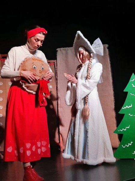 Затем, все отправились в зрительный зал, где смотрели новогодний, кукольный спектакль "Колобок и Компания".
