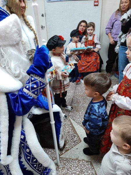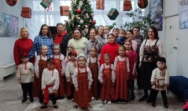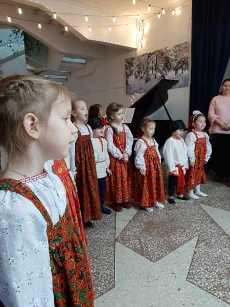 В начале праздника, в фойе выступили юные артисты фольклорного ансамбля "Колокольчики", руководитель Ольга Валерьевна Козлова. Участники ансамбля порадовали всех зажигательными песнями!